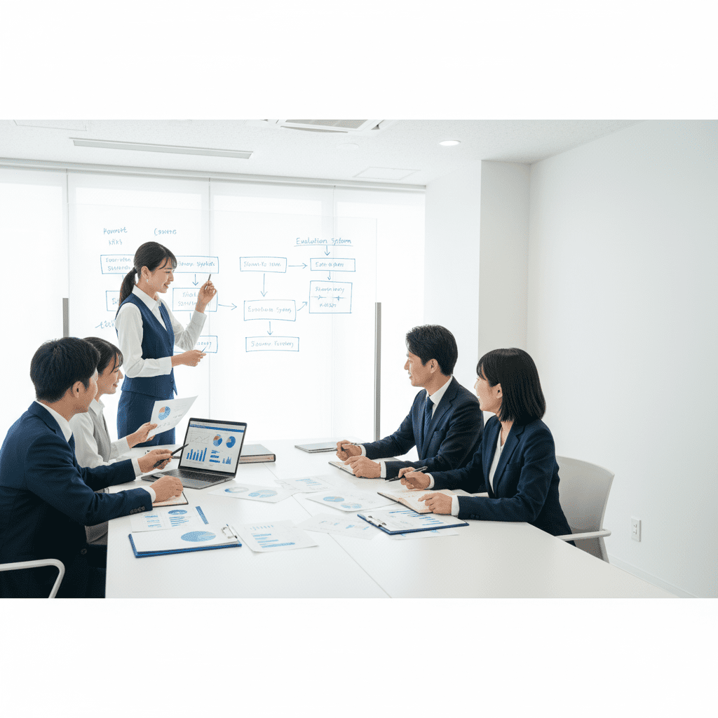 等級・評価・報酬を現場で回る仕組みに再設計。ロール/レベル定義、評価基準と行動例の整備、目標設定運用(OKR/SMART)、評価会運営の型化、報酬レンジと反映ルールの明確化まで。90日スプリントで試作→パイロット→定着を推進。